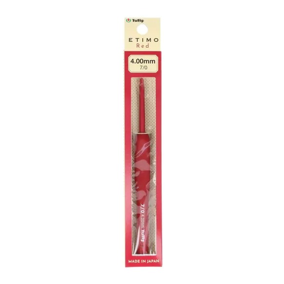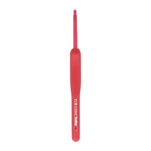 De prachtige Etimo Red aluminium haaknaalden van Tulip zorgen dankzij de comfortabele zachte softgrip handgreep voor urenlang haakplezier zonder vermoeide handen.