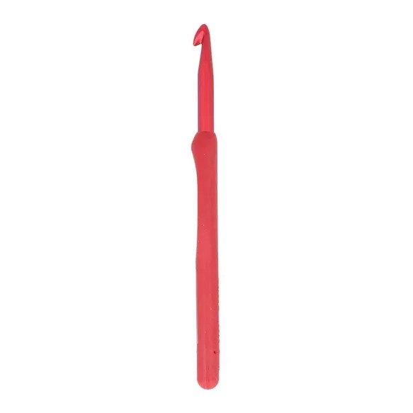 De prachtige Etimo Red aluminium haaknaalden van Tulip zorgen dankzij de comfortabele zachte softgrip handgreep voor urenlang haakplezier zonder vermoeide handen.
