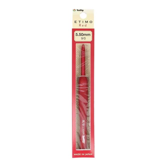De prachtige Etimo Red aluminium haaknaalden van Tulip zorgen dankzij de comfortabele zachte softgrip handgreep voor urenlang haakplezier zonder vermoeide handen.