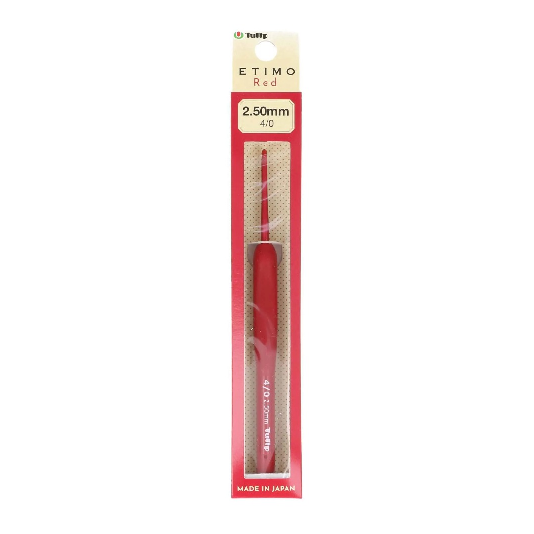 De prachtige Etimo Red aluminium haaknaalden van Tulip zorgen dankzij de comfortabele zachte softgrip handgreep voor urenlang haakplezier zonder vermoeide handen.