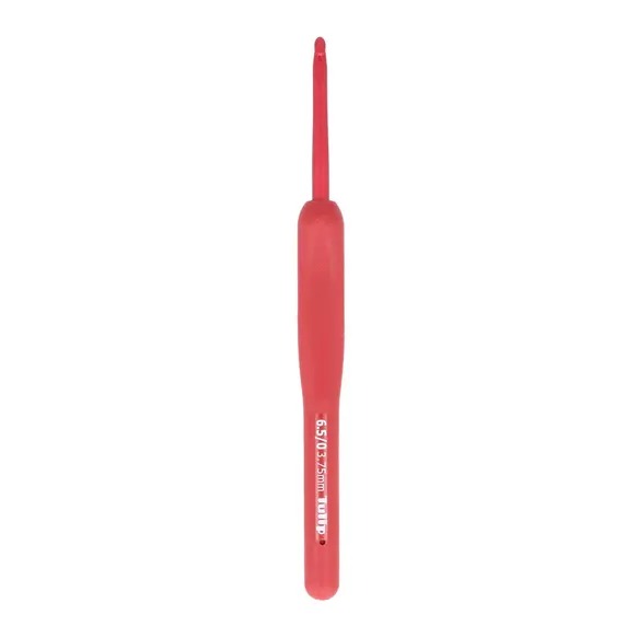 De prachtige Etimo Red aluminium haaknaalden van Tulip zorgen dankzij de comfortabele zachte softgrip handgreep voor urenlang haakplezier zonder vermoeide handen.